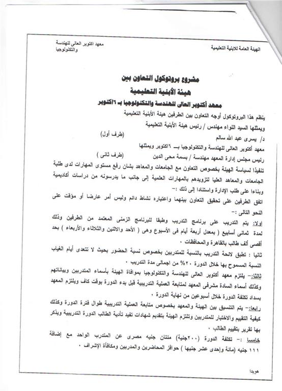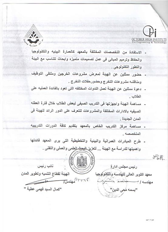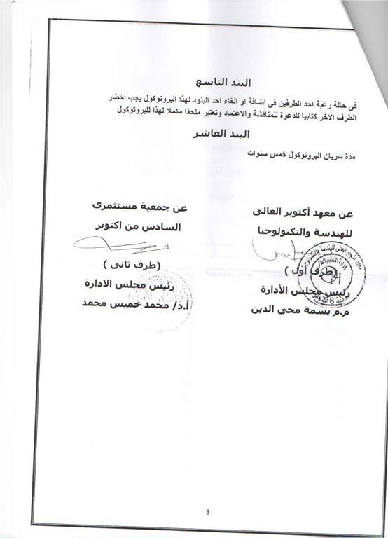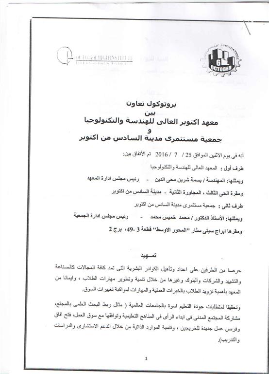 And the High Institute for Engineering and Technology in 6 of October is one of the institutions of civil society that are trying hard to play a key role in the development and upgrading of the living standards of citizens both socially and culturally, and to maintain ecological balance.